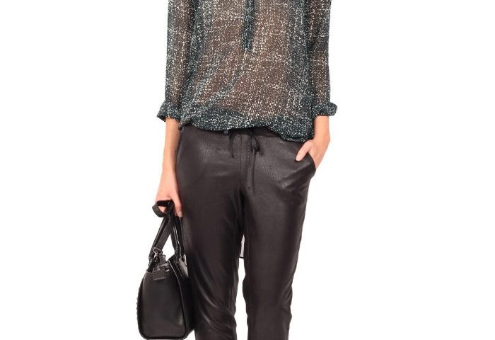 كما يمكن أيضاً ارتداء السروال الرياضي في العمل. ولهذا الغرض يتم اختيار موديل مصنوع من خامة أكثر فخامة مثل الحرير أو بمظهر الجلد، على أن يتم تنسيقه مع بلوزة تكتسي بالأبيض أو الأزرق وصديري أنيق. وتكتمل أناقة هذه الإطلالة بحذاء ذي كعب عال أو بوت قصير.