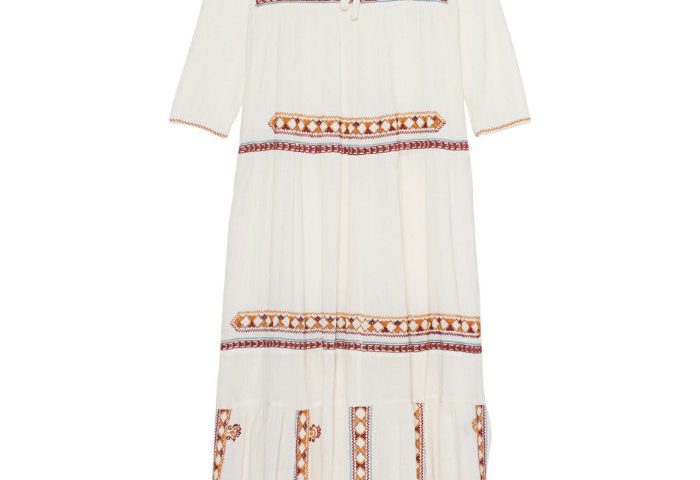 وأضافت المجلة المعنية بالموضة والجمال أن الفستان الفلكلوري يتناغم مع الصندل، بينما تكتمل أناقة هذه الإطلالة بالأقراط الضخمة، التي تشهد رواجاً كبيراً هذا الموسم أيضاً.