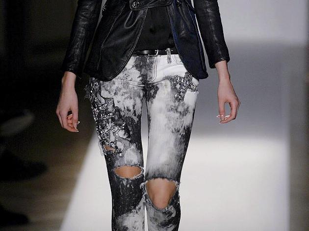 فرانكفورت 28 كانون ثان/يناير (د ب أ)- ذكرت مجلة «الأقمشة والمنسوجات» الألمانية أن سروال الجينز الملتصق بالجسم ذا المظهر الرث والمهترئ «Destroyed Skinny» يمثل أحدث صيحات الموضة النسائية في ربيع/صيف 2014.