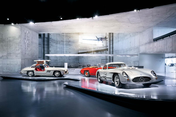 من يرغب في معرفة بدايات صناعة السيارات، فما عليه إلا التوجه إلى الطابق العلوي من متحف "مرسيدس-بنز". فانطلاقاً من هناك يبدأ الزوار طريقهم عبر تاريخ السيارات على جولتين في 9 مستويات، بدءاً من عام 1886 وحتى وقتنا الحاضر. ويعتبر المتحف الوحيد في العالم الذي يعرض 127 سنة من تاريخ السيارات دون فجوات. لقد صمم المبنى على غرار دوامة الحمض النووي بشكلها الحلزوني المزدوج. يوجد في داخله 160 مركبة وأكثر من 1500 معروض على مساحة 16500 متر مربع.