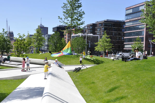 يهيمن اللون الأخضر على هامبورغ فهي تزخر بالمساحات الخضراء والحدائق الجميلة ووالمرافق الترفيهية التي تستقطب كافة أفراد العائلة. ففي متنزه المدينة "شتادت بارك" يستطيع الكبار والصغار القيام برحلة إلى الفضاء الخارجي داخل القبة السماوية والتي تعد من أقدم القبب في العالم، فهي لا تعرض أفلاماً تحاكي عالم النجوم والكواكب فحسب، وإنما تعد أيضاً ساحة للعروض المسرحية والموسيقية.