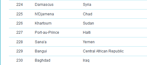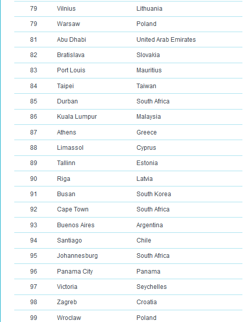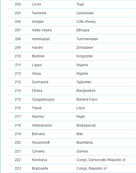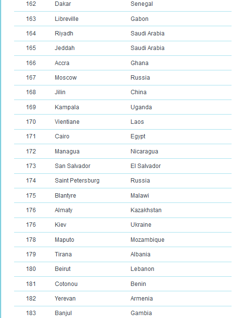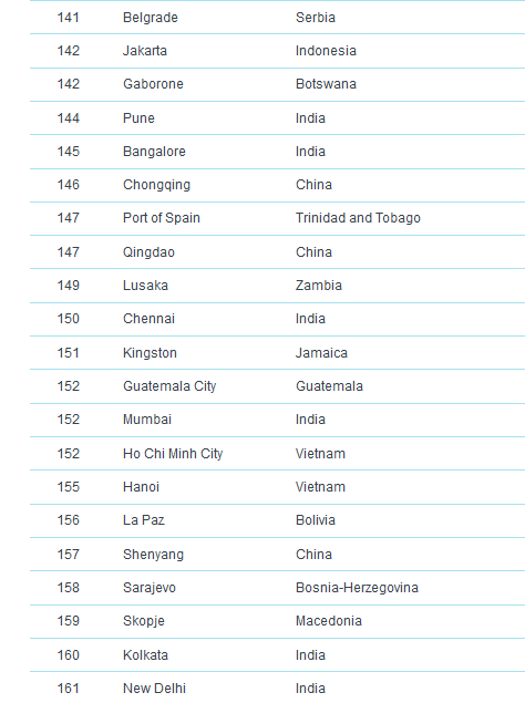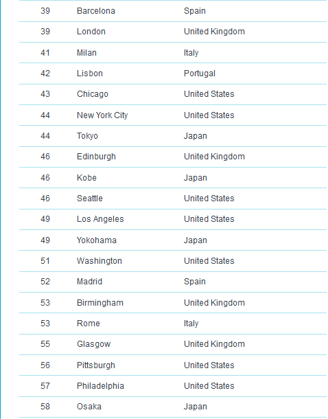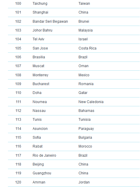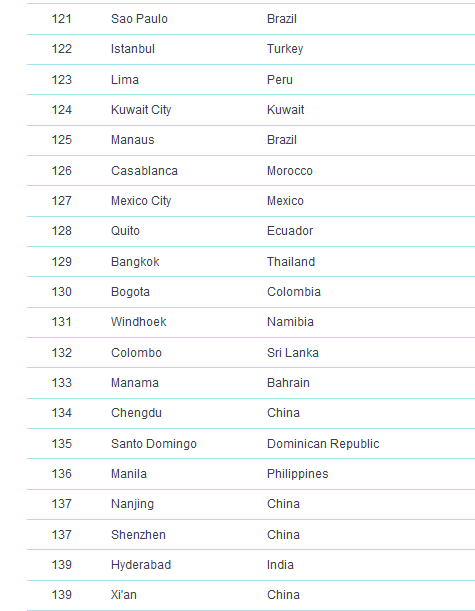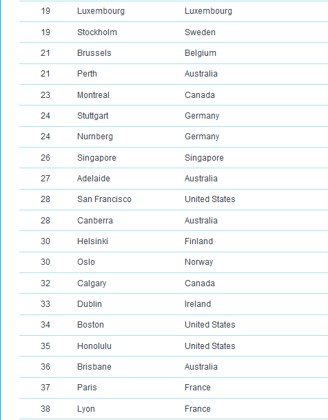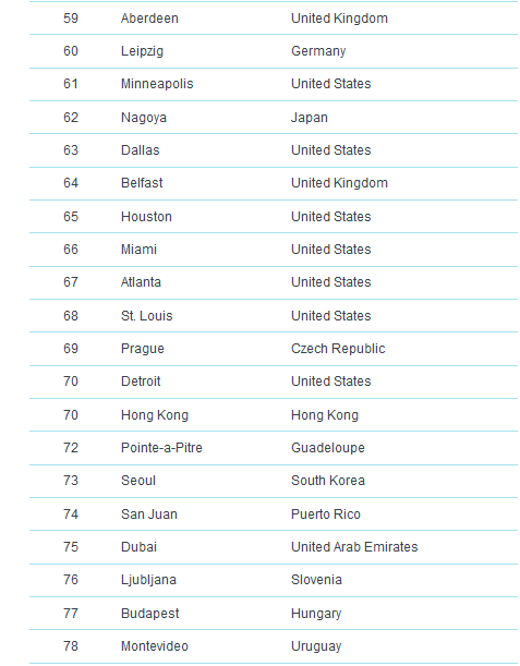 وكانت مدينة ميونخ قد احتلت المركز الرابع في قائمة العام الماضي أيضاً، فيما لم يطرأ تغيير على ترتيب دوسلدورف وفرانكفورت، بينما حلت العاصمة برلين في المركز الثالث عشر و هامبورغ في المرتبة الثامن عشر ومدينة نورنبيرغ في المركز الرابع والعشرين، متقدمة مرتبة واحدة عن العام الماضي. ، وشتوتغارت إلى المركز الرابع والعشرين.