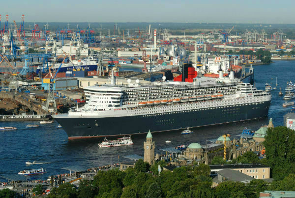 يمثل مدخل هامبورغ مدخلاً خاصاً جداً، فعند عبور نهر الإلبه باتجاه المدينة يمر الضيوف بالفيلات البيضاء والشواطئ التي تصطف على أطرافها الأشجار في قرية “بلانكينيزه”، وبيوت شوارع الميناء الملونة في حي “سانت باولي”، عابرين بين منظر المدينة البانورامي ومجمع المخازن “شبايشر شتادت” والميناء الصناعي. وقد شهدت ضفاف نهر الإلبه يوم 19 يوليو 2014 زخماً كبيراً، حيث استقبل حوالي 500 ألف متفرج وهم يلوحون ويهتفون السفينة السياحية “كوين ماري 2″، فهذه السفينة التي توصف بأنها أكبر وأغلى سفينة سياحية في العالم كانت قد أبحرت لأول مرة في ميناء هامبورغ. وفي عام 2014 صادف هذا التاريخ المهم الاحتفال بالذكرى العاشرة على علاقة هامبورغ بهذه السفينة. ففي ذاك الوقت اسعدت انطلاقتها الحقيقية بالفعل عشاق السفن السياحية في هامبورغ. وفي غضون ذلك أصبح هناك علاقة خاصة جداً بين سكان المدينة وهذه السفينة التي تُلقب بـ “ملكة البحار”. فمن مدينة هامبورغ الهانزية ينطلق كل عام المزيد من السفن السياحية إلى مناطق مختلفة من العالم، فبعضها يتوجه إلى أقصى الشمال، حيث يجوب المضايق النرويجية وأيسلندا أو أرخبيل “سفالبارد”، وبعضها الآخر يكتشف إنكلترا واسكتلندا وأيرلندا، ومنها ما ينطلق إلى بحر البلطيق ومدن البلطيق مثل “تالين” و”ريجا” وصولاً إلى روسيا، أو يجوب الساحل الأوروبي الغربي ماراً بأمستردام نزولاً إلى البحر الأبيض المتوسط. كما تمثل هامبورغ أيضاً نقطة البداية لانطلاق الرحلات البحرية عبر الدروب الأطلسية إلى الولايات المتحدة وجنوب أفريقيا وأستراليا.