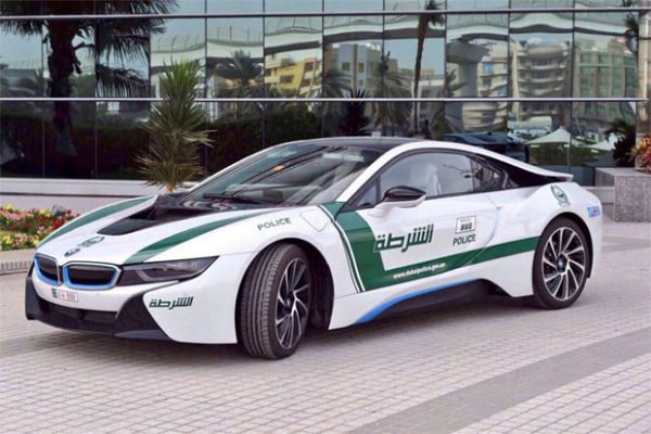 أضافت شرطة إمارة دبي السيارة الرياضية الهجين آي8 من إنتاج بي.إم.دبليو الألمانية إلى أسطول سيارات المطاردة فائقة السرعة الذي يضم سيارات بورش وفيراري ولامبورجيني.