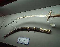 والسيف مصنوع من الحديد الدمشقي المكفت بالذهب بكتابات عربية إسلامية ومغلف بالفضة حيث نقشت عليه نقوشا متقنة وهو ممهور بختم السلطان وهو ختم الفضة الخاص بالحقبة التي حكم فيها، إضافة إلى مجموعة من السجاد الشرقي الإيراني والقوقازي والتركي منها سجادة كاشان مصنوعة من خيوط الحرير والفضة في منتصف القرن التاسع عشر.