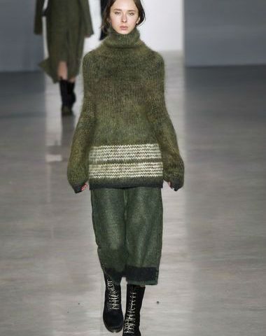 (د ب أ)- يغزو اللون الأخضر الداكن الذي يحاكي الملابس العسكرية المموهة عالم الموضة النسائية في خريف/شتاء 2014