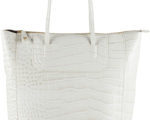 وتأتي الحقيبة البيضاء مصنوعة من الجلد وتطل بأشكال متنوعة، لاسيما شكل شبه المنحرف الرائج بقوة هذا الموسم، كما تزدان بعض الموديلات بنقوش جلود الزواحف.