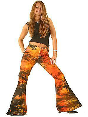 وأوضحت مجلة "الأقمشة والمنسوجات" الألمانية أن مفردات موضة السبعينيات تتمثل في السراويل ذات الأرجل الواسعة والوسط العالي والملابس المزدانة بالأهداب والفساتين والبلوزات، التي تزدان بنقوش الزهور.