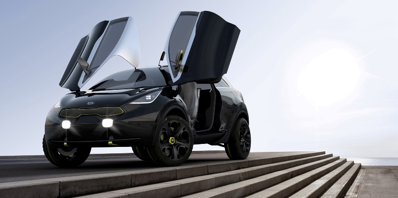 وقامت شركة كيا بتعزيز الطابع الرياضي بسيارتها الاختبارية Niro من خلال السقف المنخفض ومبيت العجلات العريض وغطاء المحرك المحدد الجوانب بقوة. وتعتبر الأبواب التي تفتح لأعلى من التجهيزات الملفتة للأنظار بالسيارة Niro، إلا أنها ستكون قاصرة على النموذج الاختباري فقط.