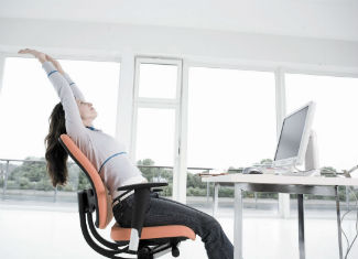 ينبغي أولاً التأكد من أن المقعد مناسب، بحيث يصل مسند الظهر على الأقل إلى لوحي الكتف، بينما يكون ارتفاع المقعد مناسباً عندما تلامس القدمان الأرض تماماً. ومن المهم أيضاً إراحة الذراعين على المساند المخصصة لهما من حين إلى آخر، وذلك لتخفيف العبء عن الأكتاف.
