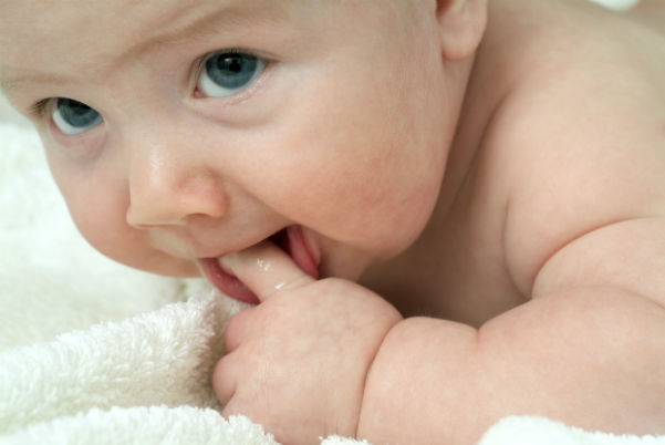 كما يضع الطفل إصبعه أو ربما قبضة يده كاملة في فمه ويعاني من قلة النوم، بالإضافة إلى التذمر والأنين.