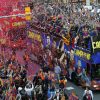 برشلونة الأسباني يحتفل بجولة في شوارع المدينة