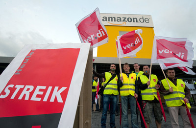 (د ب أ)- نظم العاملون لدى شركة أمازون الأمريكية لتجارة التجزئة على الإنترنت في ألمانيا إضرابا ليوم الثلاثاء 14 مايو 2013 في إطار حملة تستهدف تحسين الأجور والامتيازات.