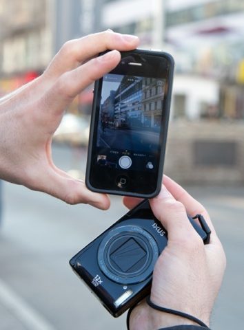 ويرى أورس تيلمانز، خبير التصوير بمجلة «Fotointern.ch» الإلكترونية، أن الكاميرات المدمجة تمتاز بشكل أساسي بالعدسة واسعة الزاوية وكذلك زر التصوير التقليدي، الذي يتيح إمكانية التقاط الصور بسهولة أكبر من النقر على الشاشة اللمسية. بالإضافة إلى أن المصور لا يتمكن من حمل الهاتف الذكي في يده بنفس درجة السهولة والعملية التي توفرها الكاميرات المدمجة.