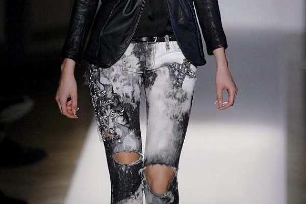 ذكرت مجلة «الأقمشة والمنسوجات» الألمانية أن سروال الجينز الملتصق بالجسم ذا المظهر الرث والمهترئ «Destroyed Skinny» يمثل أحدث صيحات الموضة النسائية في ربيع/صيف 2014.