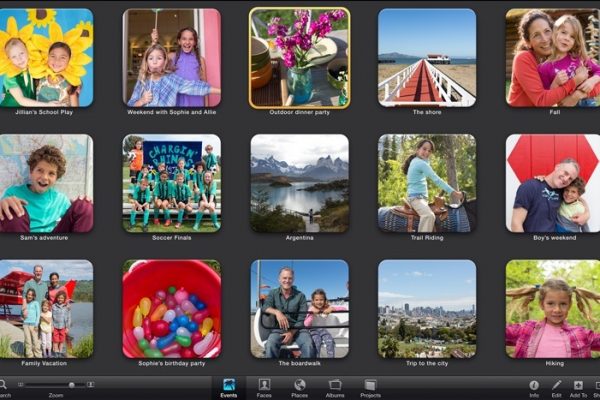 عادةً ما يتمكن المستخدم من عرض الصورة على كامل الشاشة في برنامج تحرير الصور iPhoto من خلال القيام بنقرة مزدوجة عليها، أما إذا رغب في عرض صورتين بجوار بعضهما البعض للمقارنة بينهما، فلا يمكن تحديد صورة أخرى في شريط الصور المصغرة من خلال الضغط على "زر الأوامر" (زر آبل).