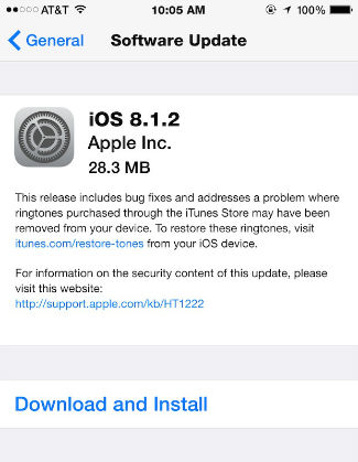 ويتمكن المستخدم من تثبيت الإصدار “آي أو إس 8.1.2” الجديد عن طريق بند تحديث البرنامج في قائمة الإعدادات أو عن طريق المزامنة مع برنامج “آي تيونز” على الحواسب.